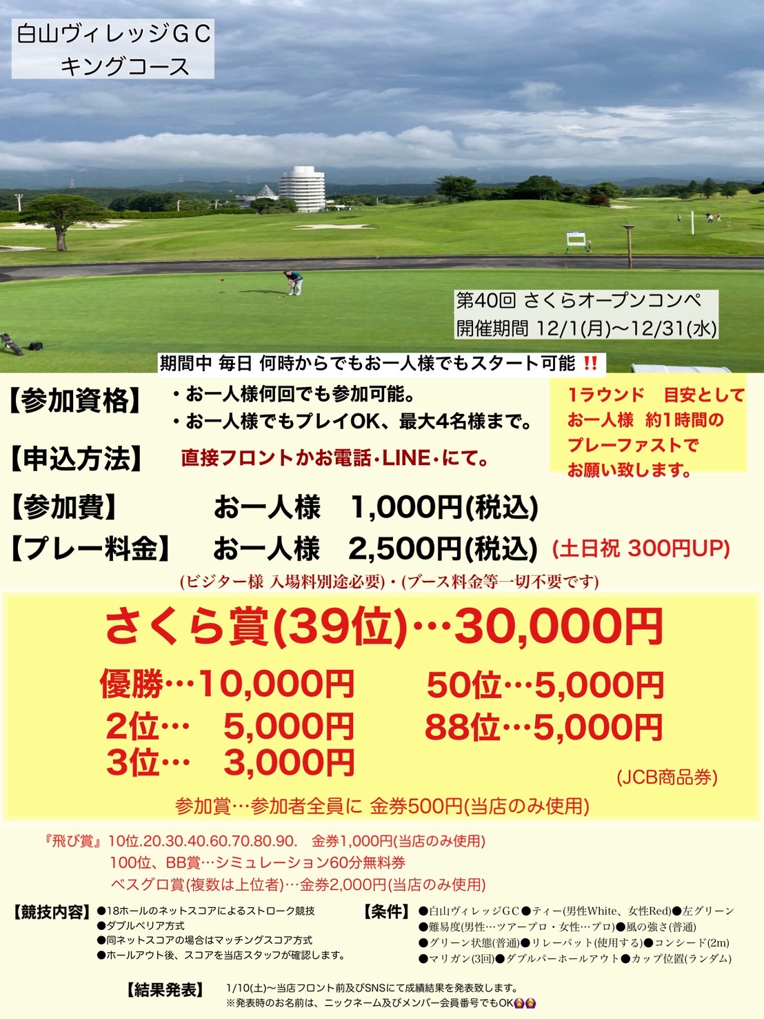 第40回さくらオープンコンペのご案内‼♪  お1人様でもプレイ可能‼