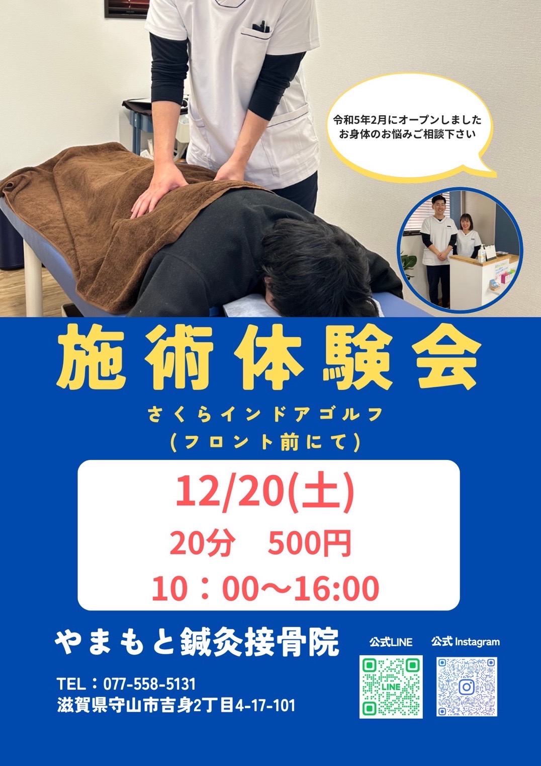 12/20土曜日 施術体験会開催‼(やまもと鍼灸接骨院)20分500円‼