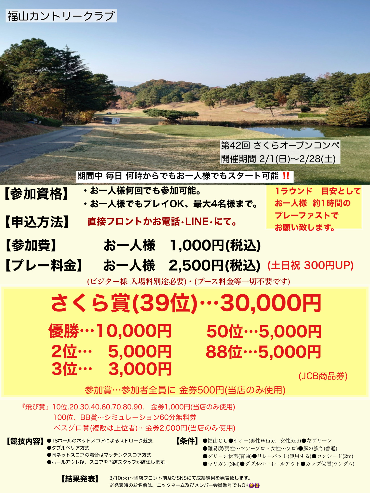 第42回さくらオープンコンペのご案内‼♪ お1人様でもプレイ可能‼