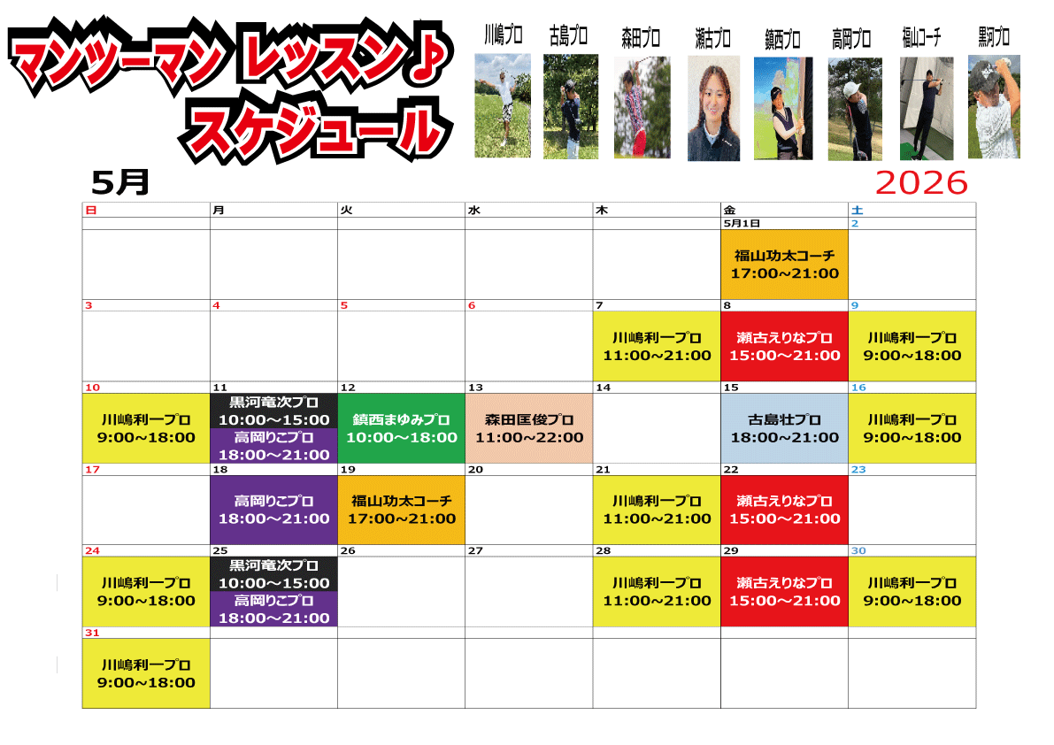 🎵2026年5月度 マンツーマンレッスンスケジュール🎵